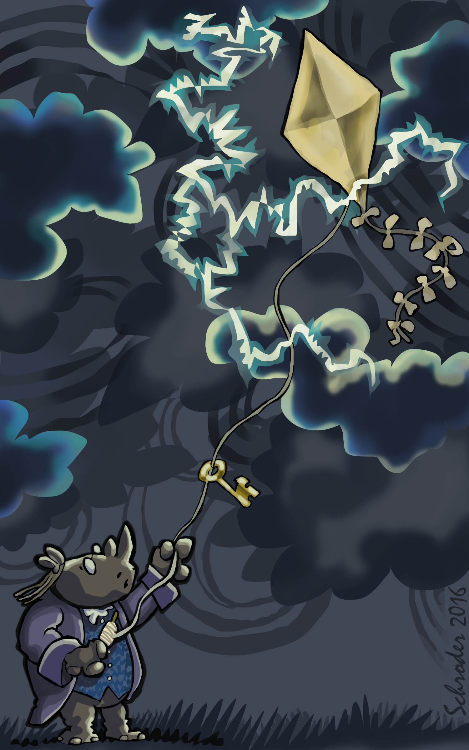 You Readers may be surprised to learn that Rhinos were there when Dr. Ben Franklin did his experiment with a kite in Philadelphia. We were camping in the field above which he looked for Lightning. Happy coincidence. (By mutual agreement, he always left Us out of the story; he had the risk, so he got the glory.)