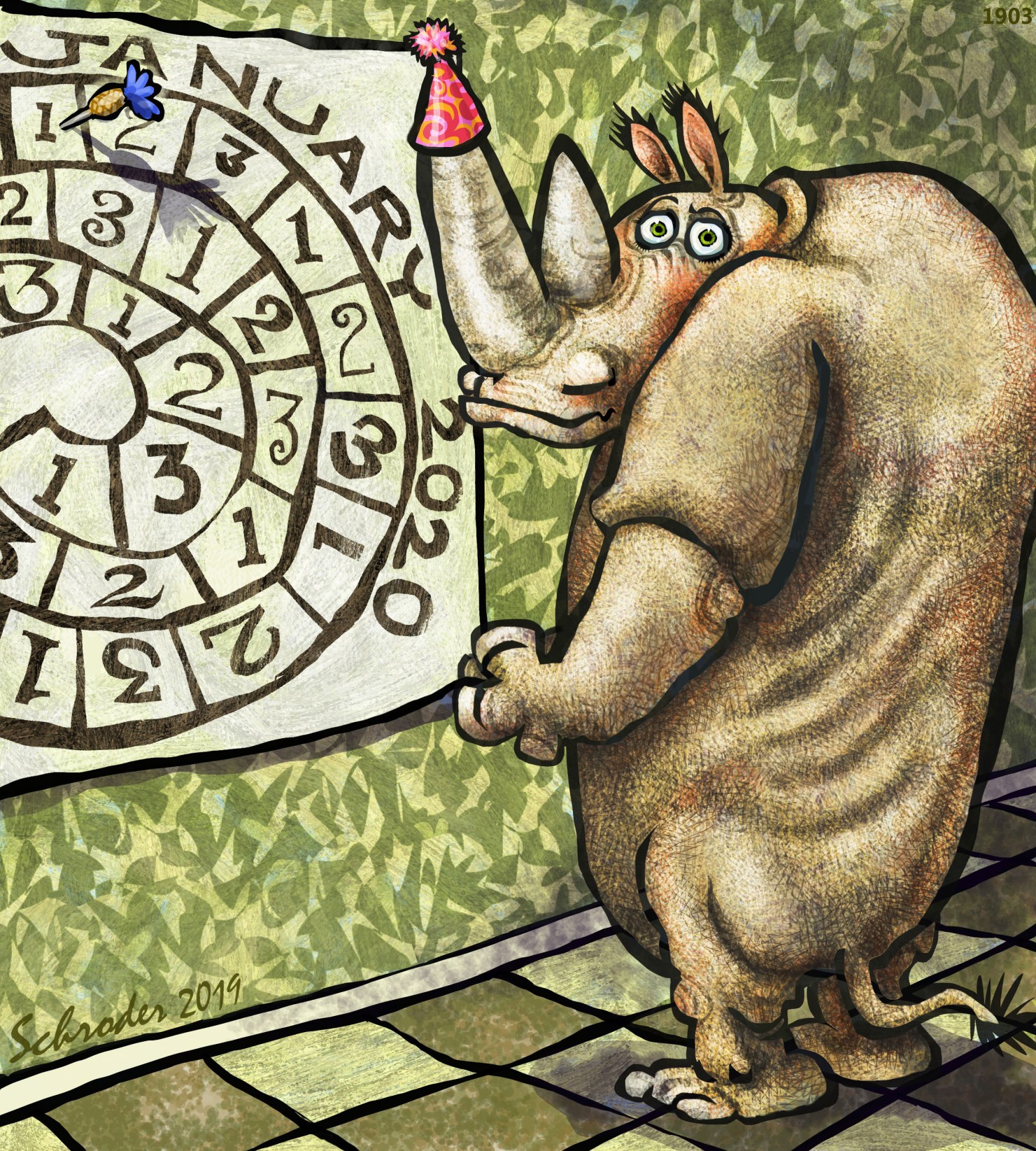 New Year’s Eve is probably most meaningful to Critters who keep track of the Calendar. Rhinos are not much attuned to fretting with the particulars of Time, but We try to get into the Spirit of the Moment.