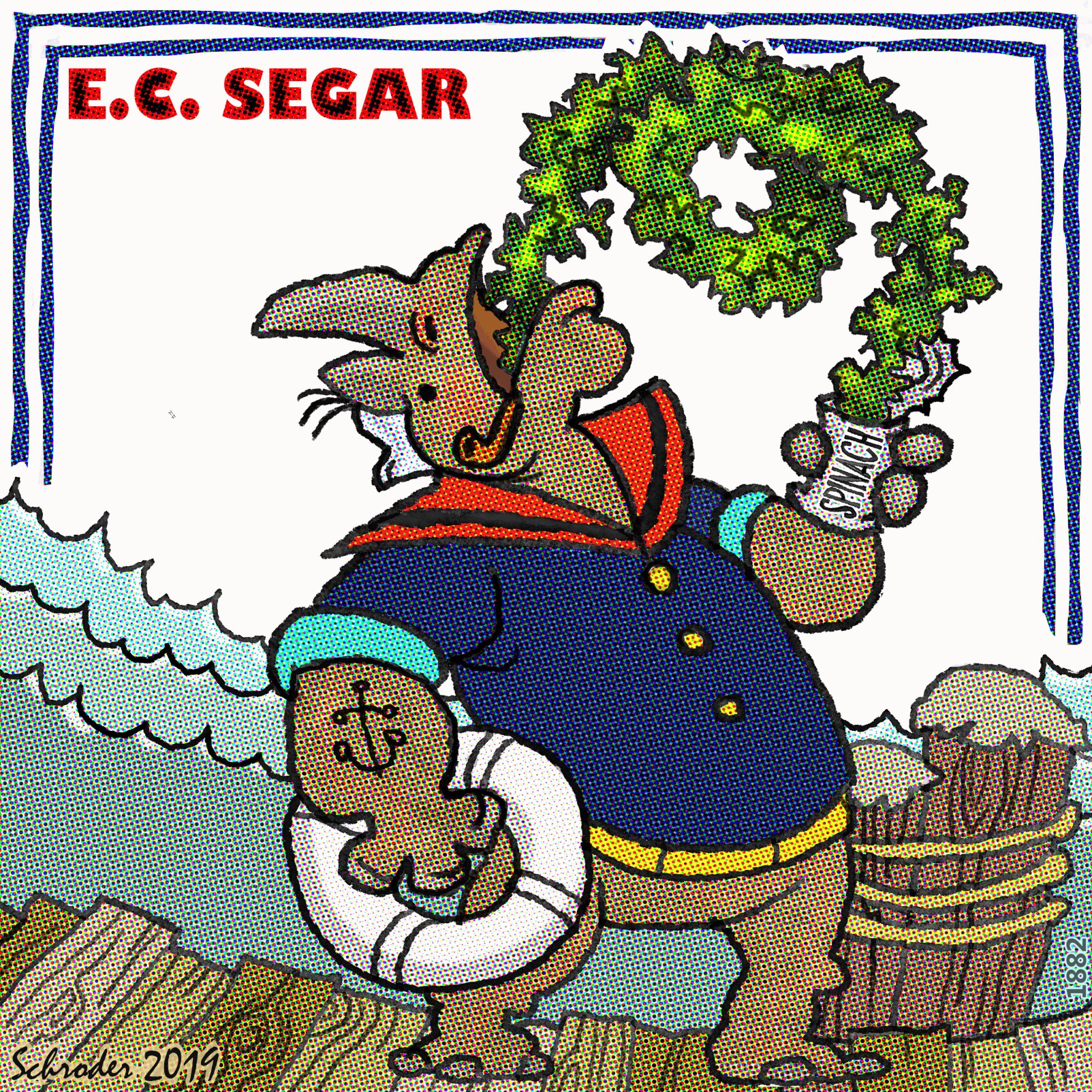 Mr. Elzie Crisler Segar, b. 1894 in Illinois, was a Cartoonist Extraordinaire. He was hired by the Hearst Company, where he started a successful strip called Thimble Theatre in 1919. In 1929 he introduced Popeye the Sailor, which was a big hit.