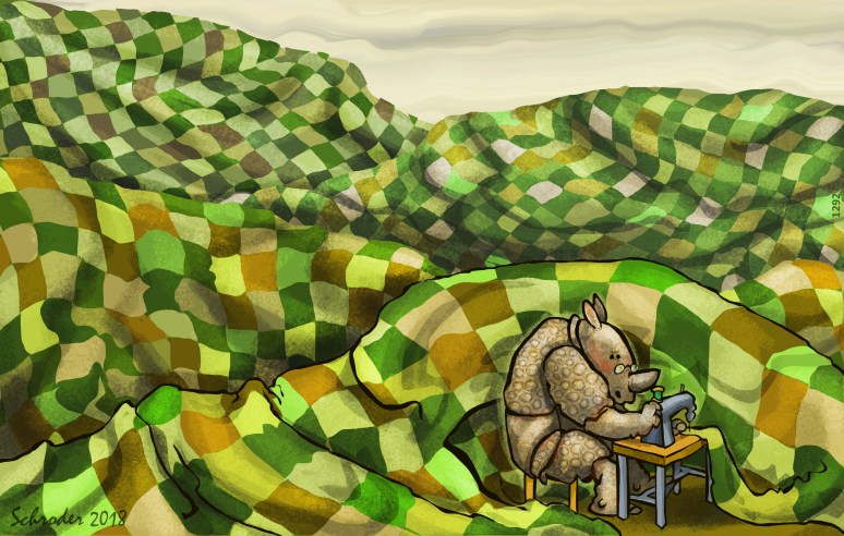 We have changed a line from Mr. Bemelmans, which in our version now reads: To the Rhino in the zoo, Madeline said, “How do you do?”. You see, being spunky does not preclude civility. Rhinos like respectful exchanges.