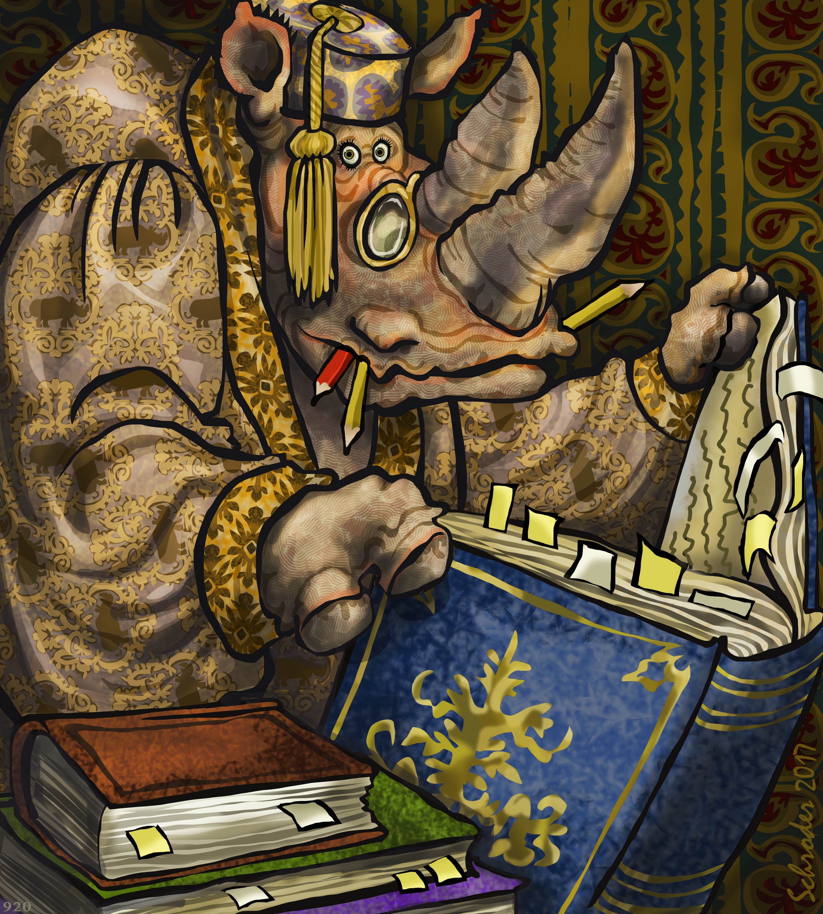 Since We cannot read, Rhinos have our own methods of doing research. These methods answer our needs, and why else would We do the research anyway? (We only pretend to read, just for the picture.)
