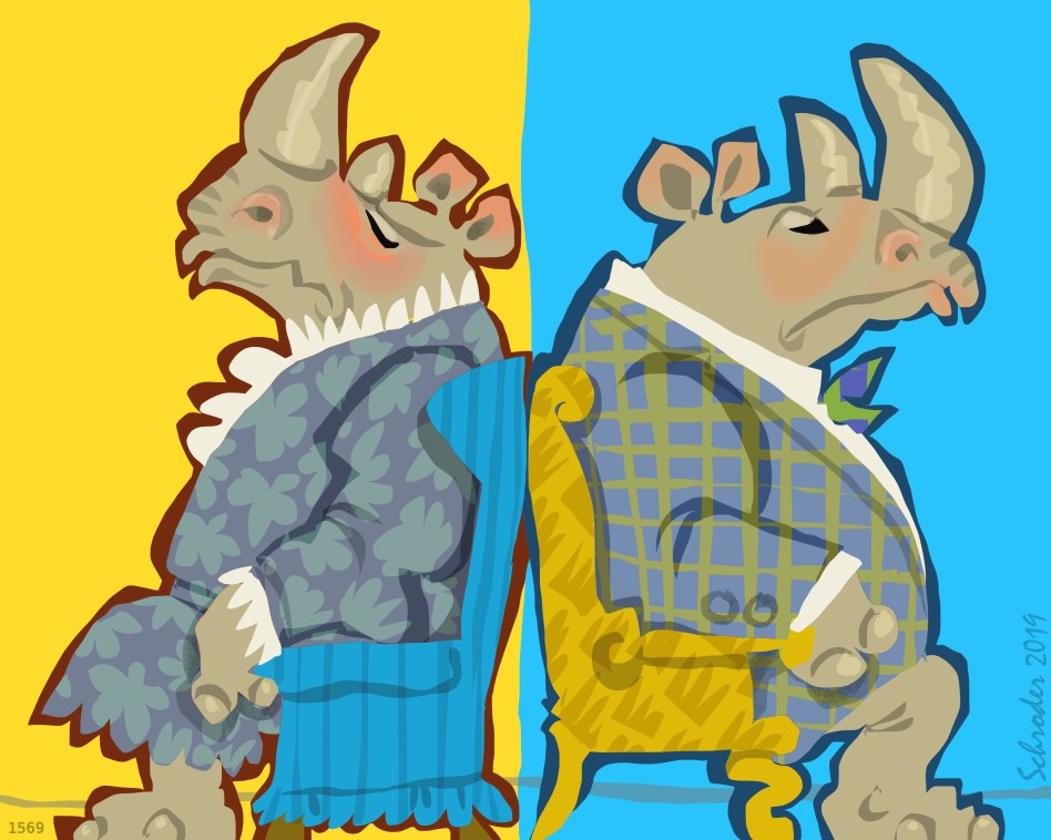 Rhinos don’t relate Mr. Strindberg’s way, if We can avoid it. We manage this by minding our own business and staying clear of Expectations or Romantic Notions. We give each other room.