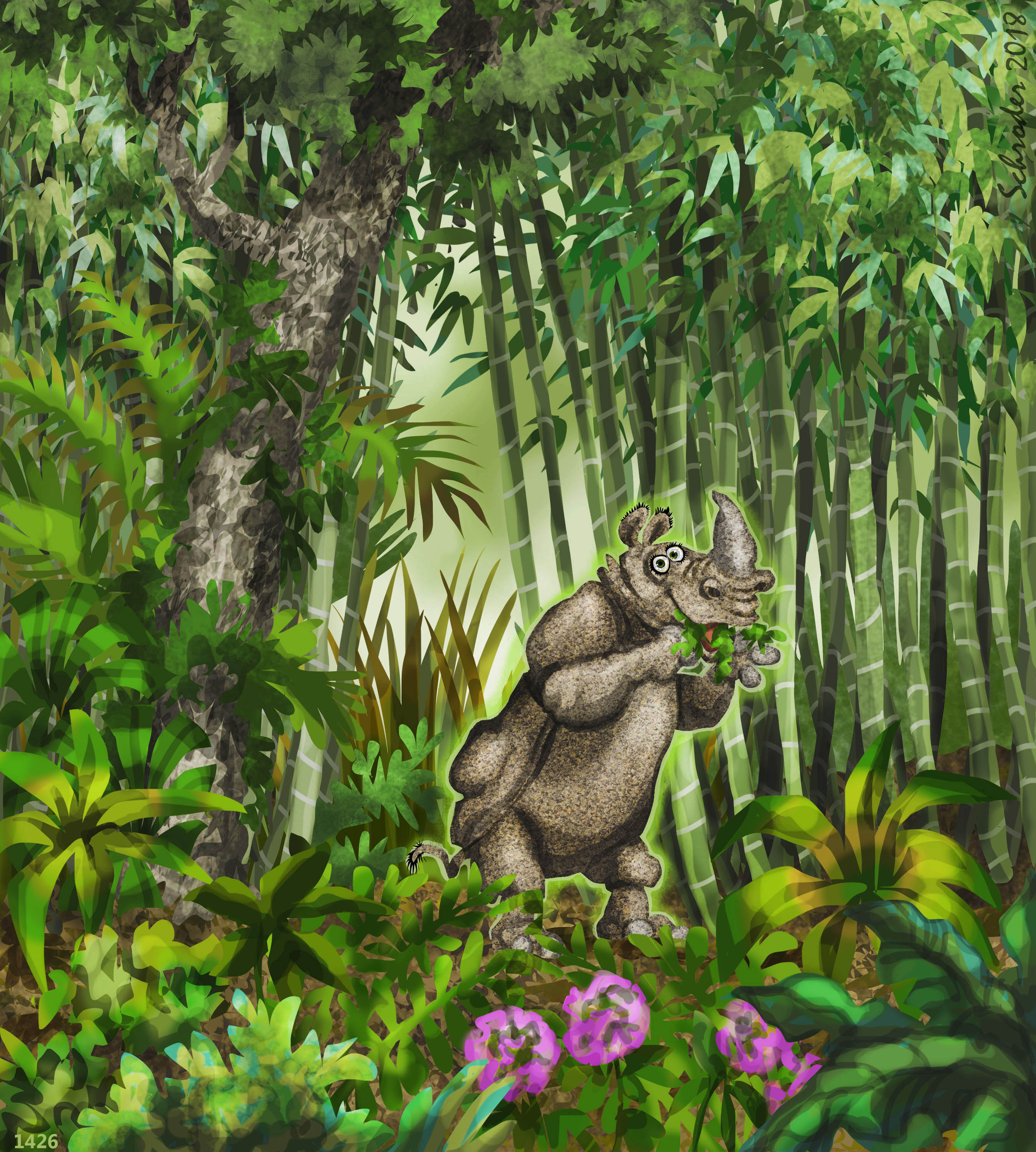 Some of Us Rhinos have lived on Java for a long time, and nobody much likes Volcanic Fallout. Still, once things settle down, plants go berserk. Salad Galore.
