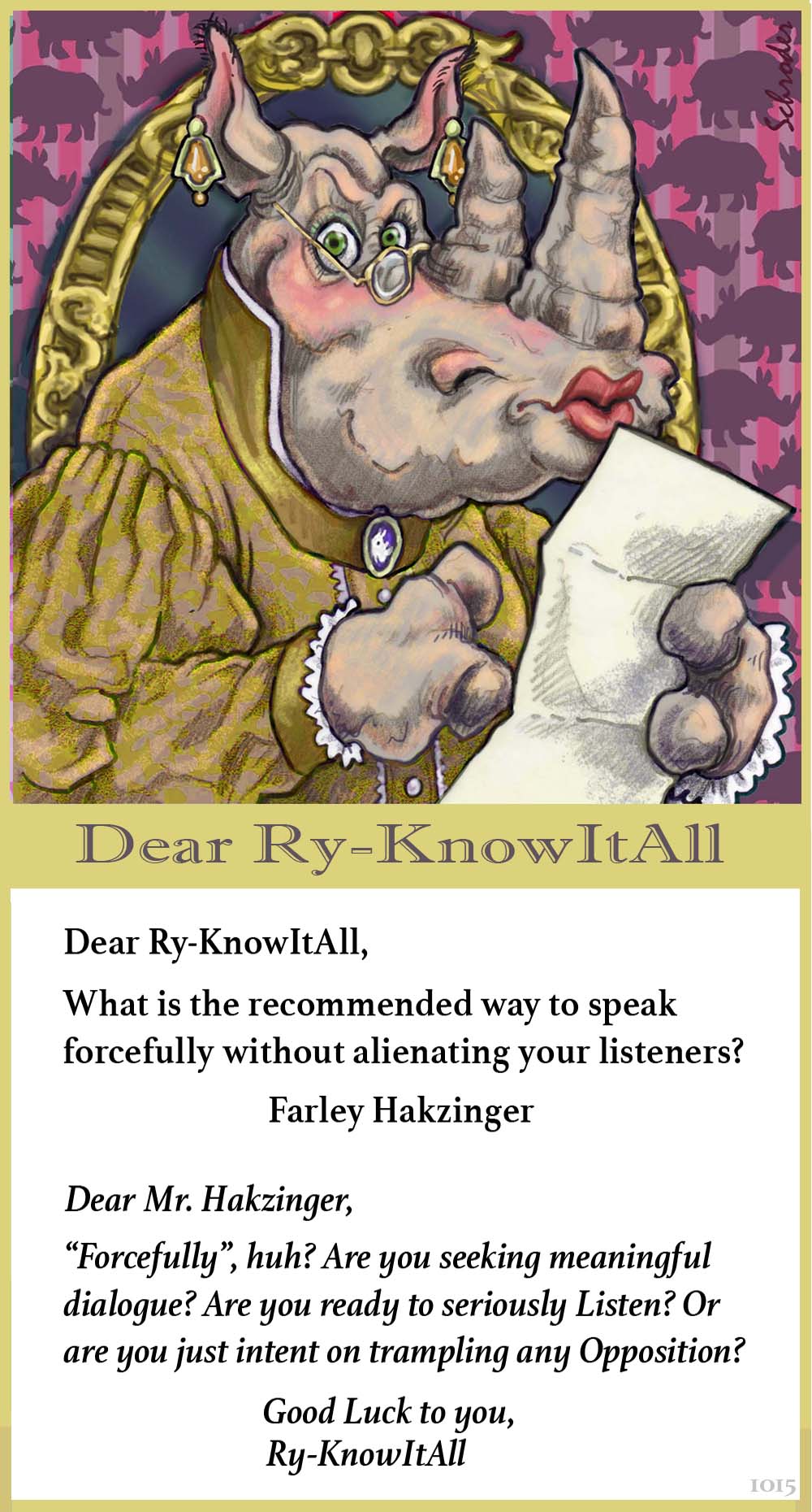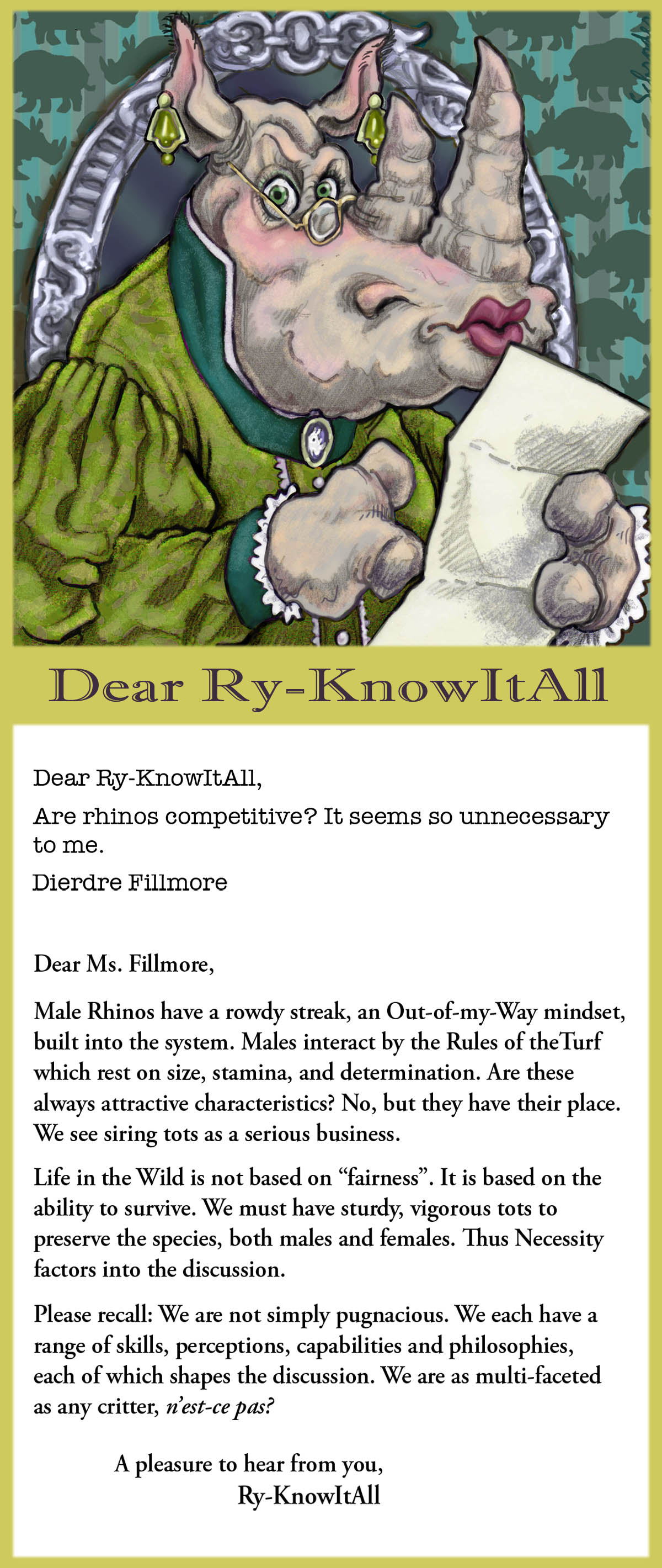 Rhinos like to think of ourselves as insightful and alert, able to analyze things with the best of ’em.