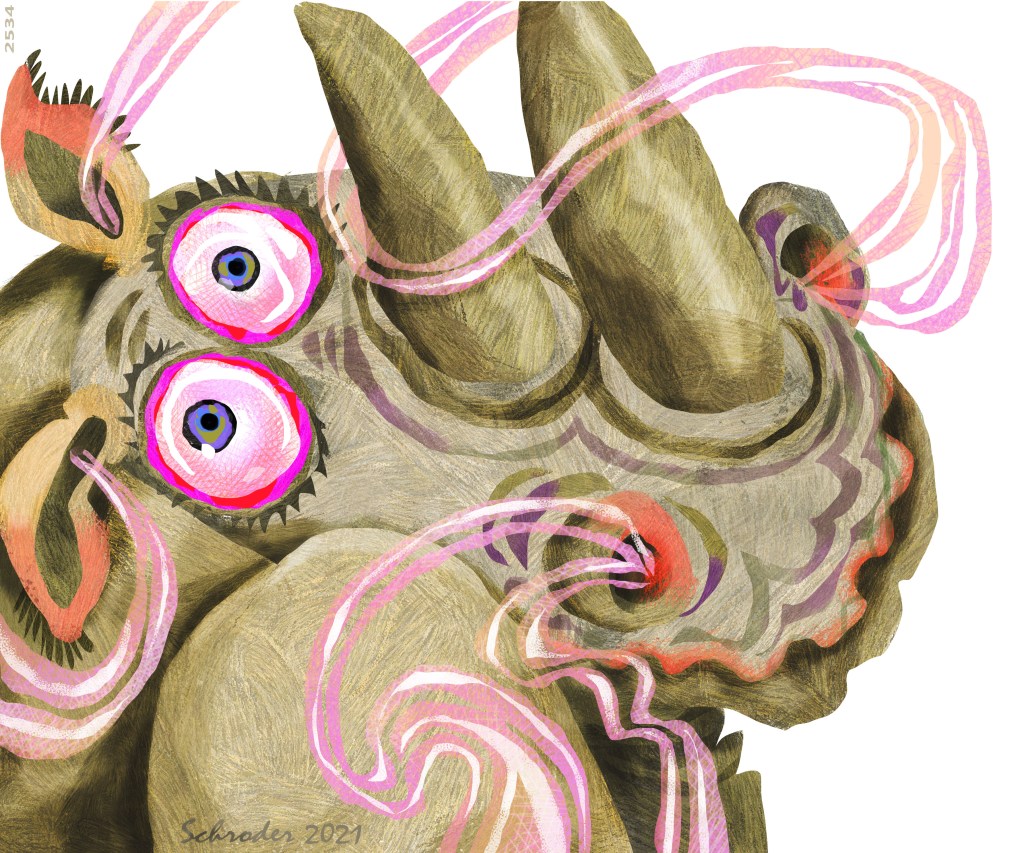 Many Rhino stomping grounds offer little shade, so we get mud or dust onto our skin to deflect the sun’s rays. Or We go into whatever water is around. That takes practice. Also, it requires no crocodiles.