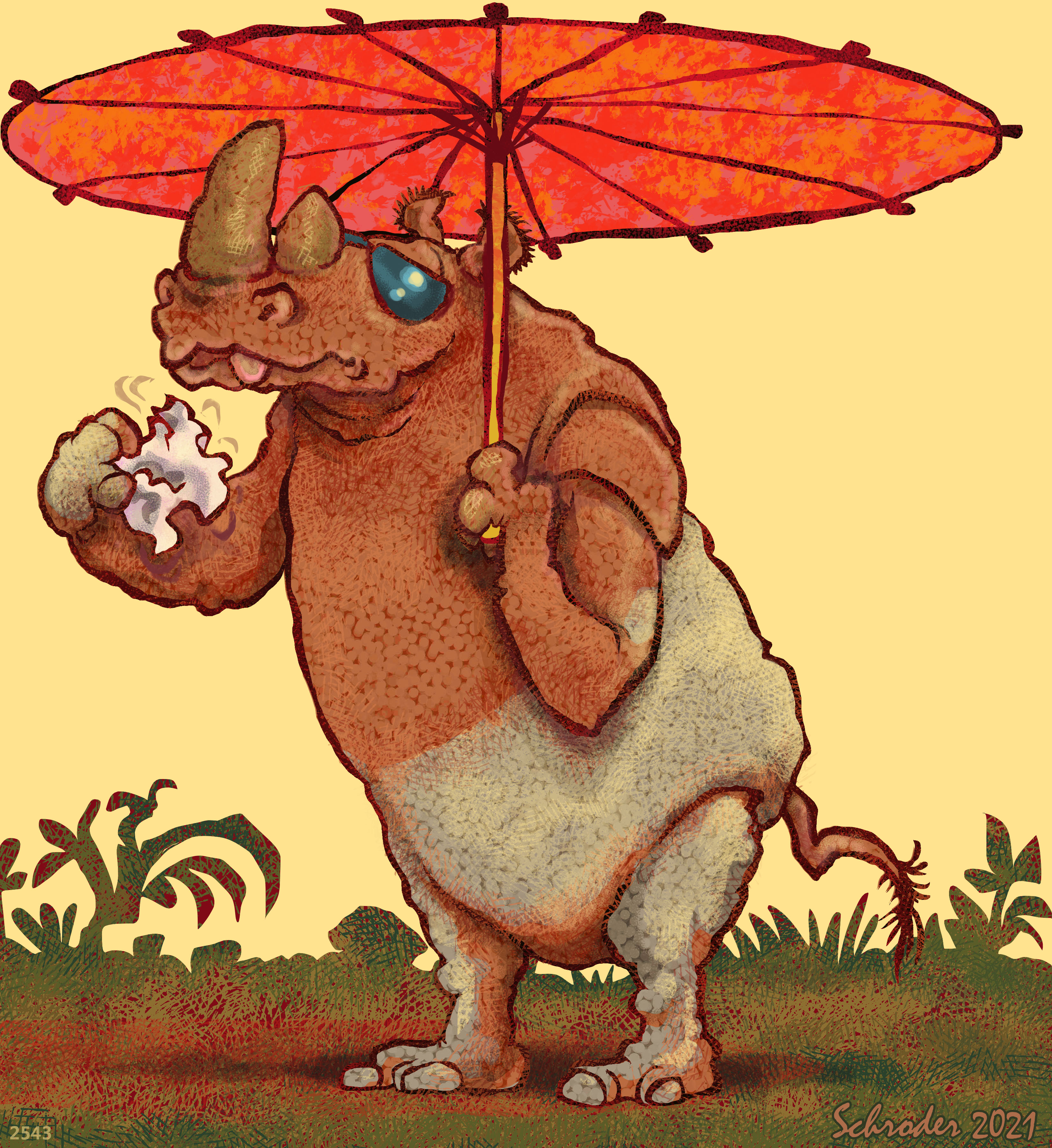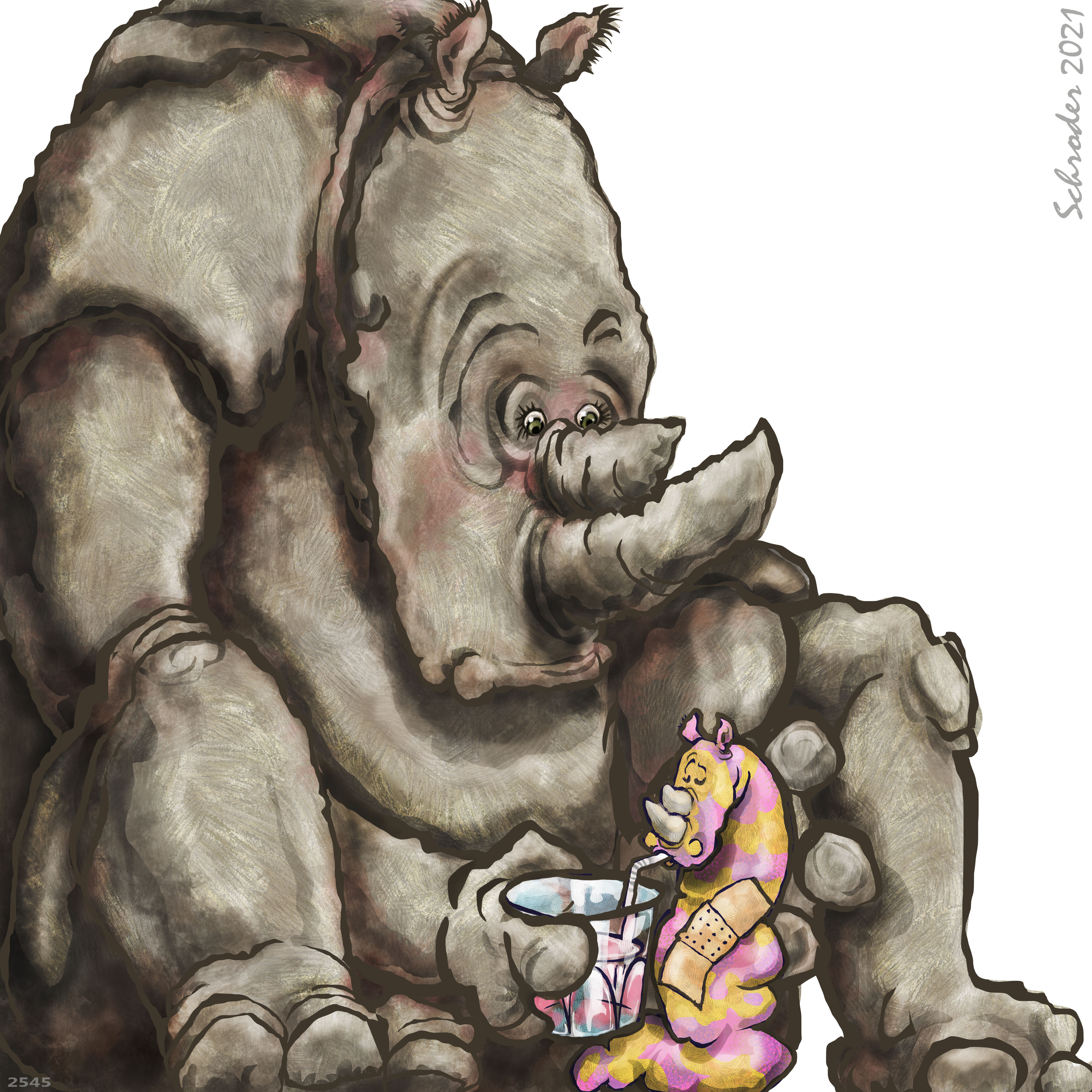 Rhinos don’t have sweat glands, which is just too bad for Us. However, We are accomplished at panting and gasping. The point of all those activities is to regulate body heat, especially with sweltering weather.