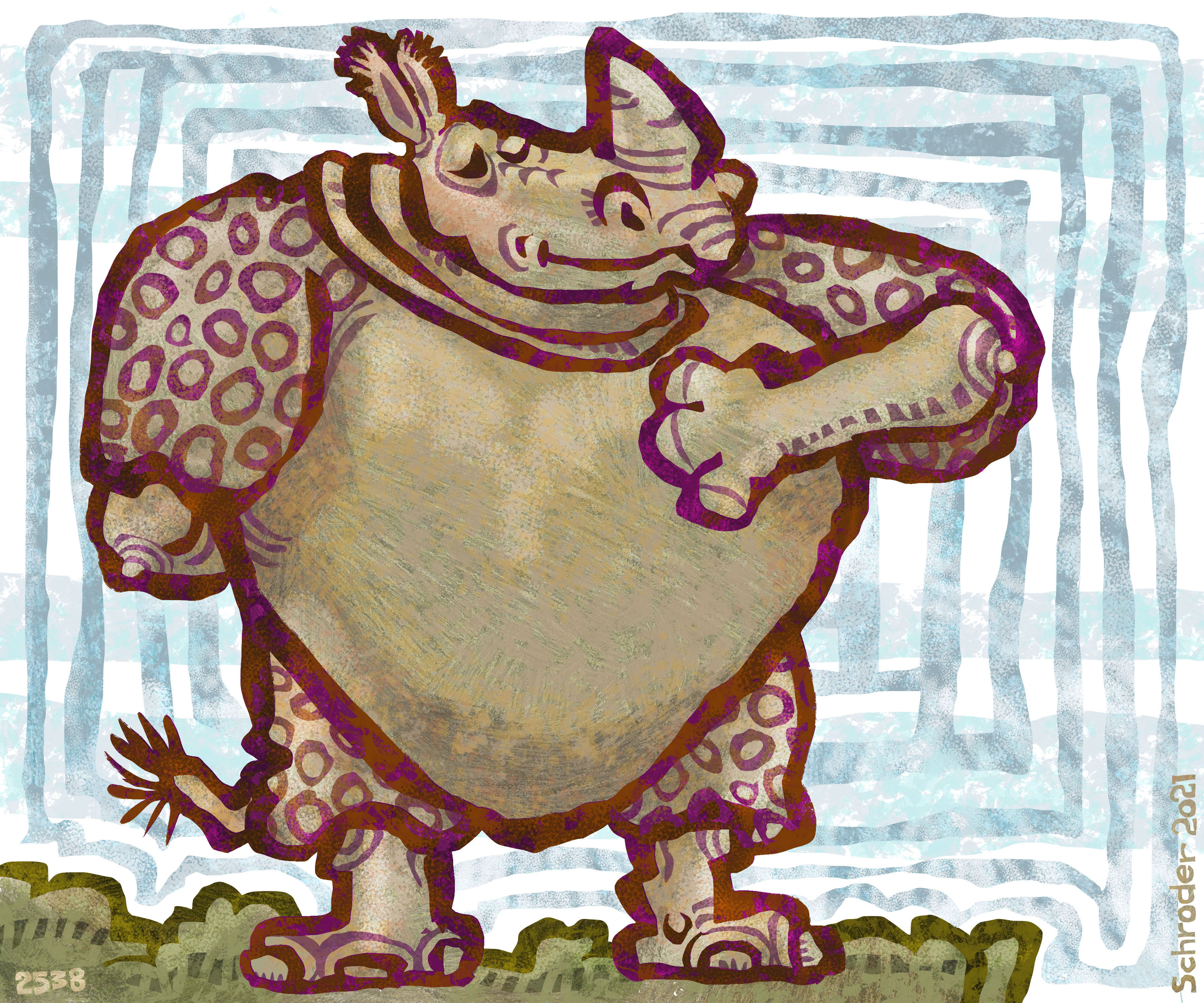 Many Rhino stomping grounds offer little shade, so we get mud or dust onto our skin to deflect the sun’s rays. Or We go into whatever water is around. That takes practice. Also, it requires no crocodiles.
