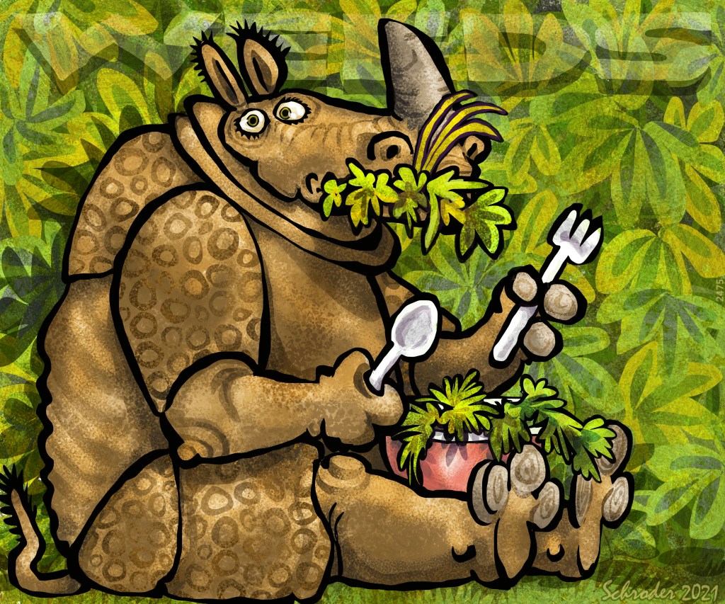 Rhinos just have to carry on, and make the best of it. With a fork, if We remember to bring one, or without, in case We must.