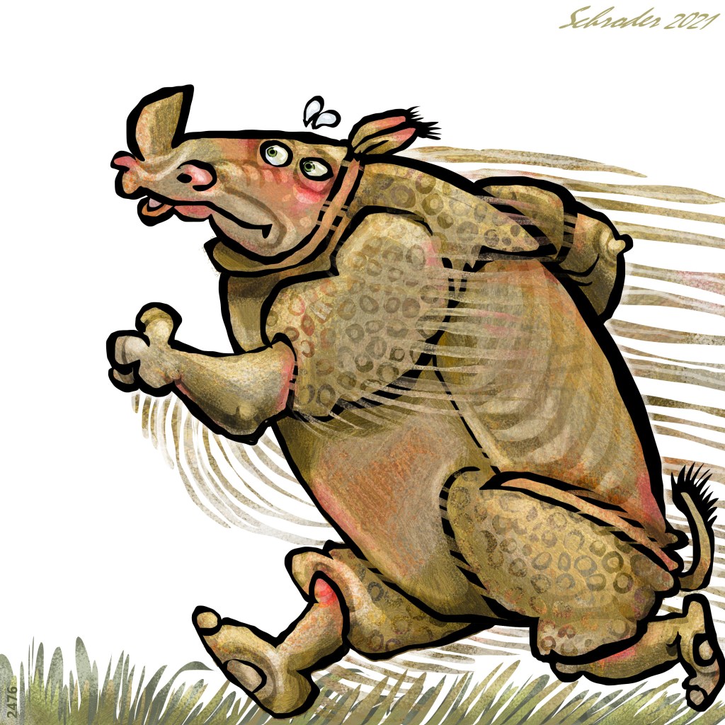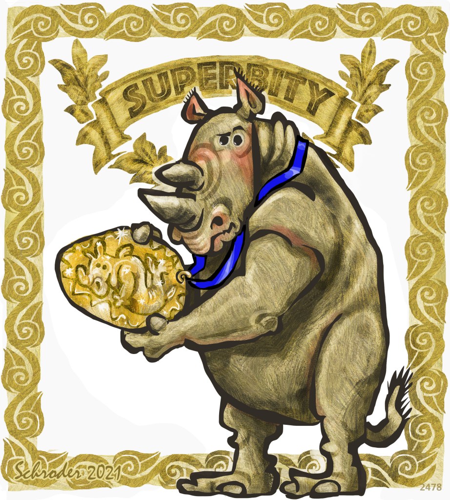 Rhinos are often surprised to be voted Most Delightful Animal Anywhere. We turn around, and We get praise or speeches or somesuch stuff. It’s been going on for a long time, but honestly…