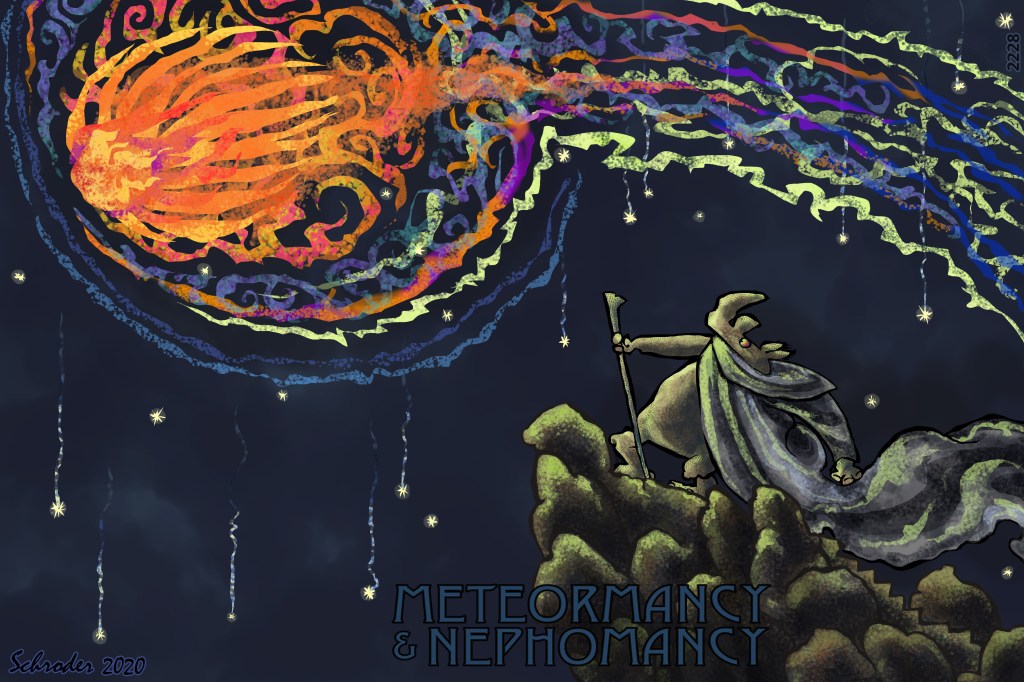 Meteormancy (study of meteors and falling stars) and Nephomancy (study of comet tails) have their fans. Seen with trusting eyes, there may be stuff to see. And Analyze and Interpret.