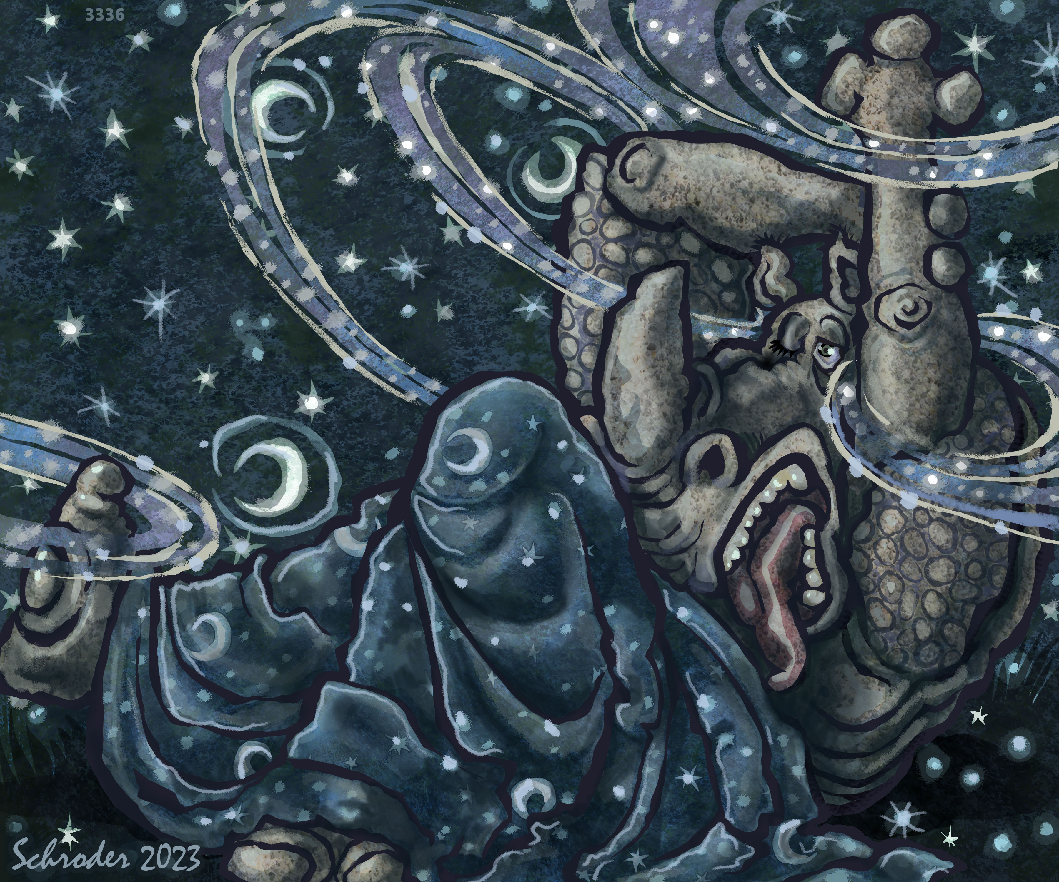 But making lists of these Kindnesses is difficult. We don’t have actual paper or pencils. Also, since We can’t count beyond three, our efforts are mostly approximate. We start out, but then We confront our own limitations.