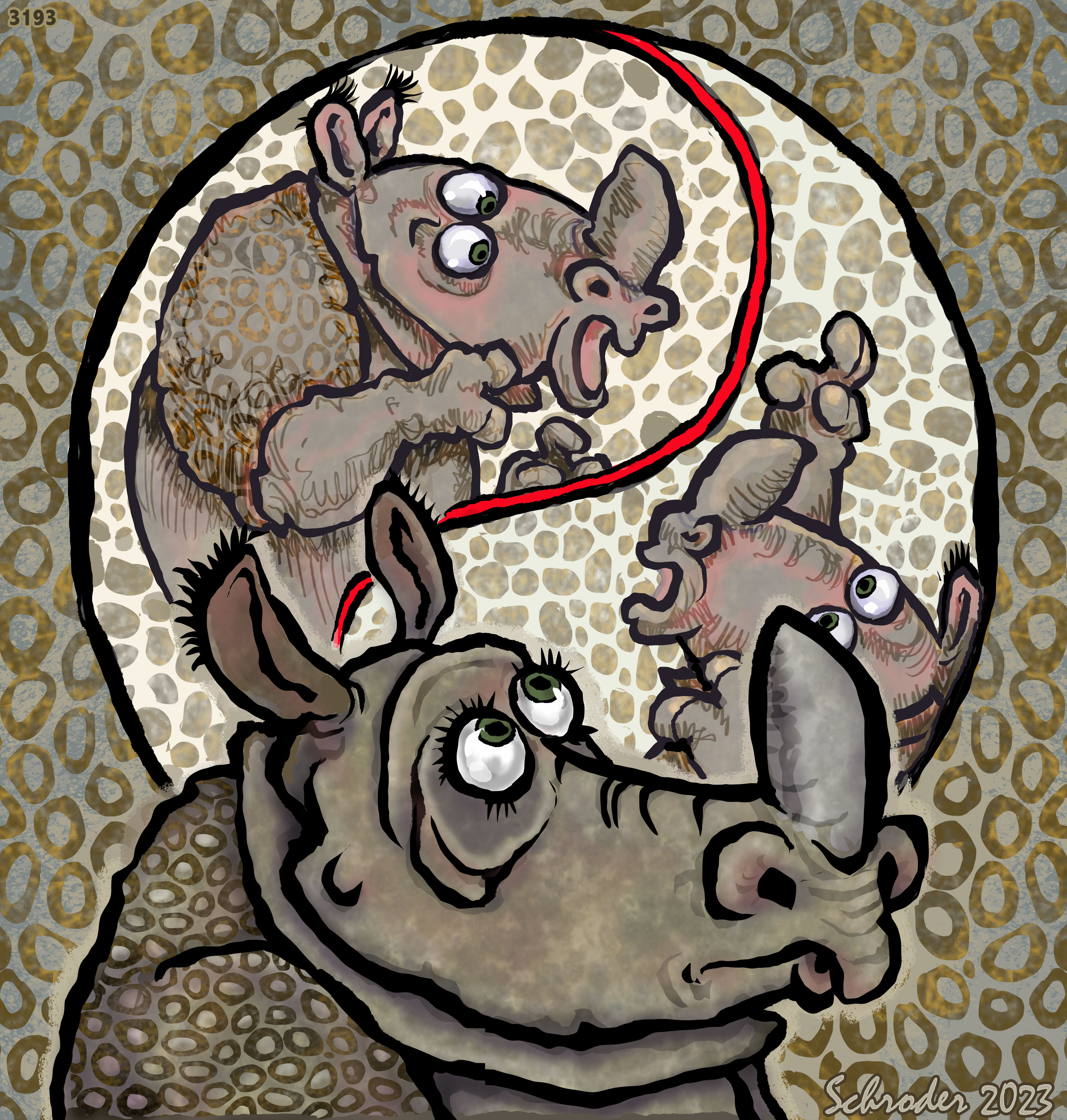 One constant Fact of Life is the Yes/No choices that go along with each and every minute, like it or not. Half-a-Rhino is saying “go for it”, and the other half is saying “look out, kiddo”. What is a Rhino to do?
