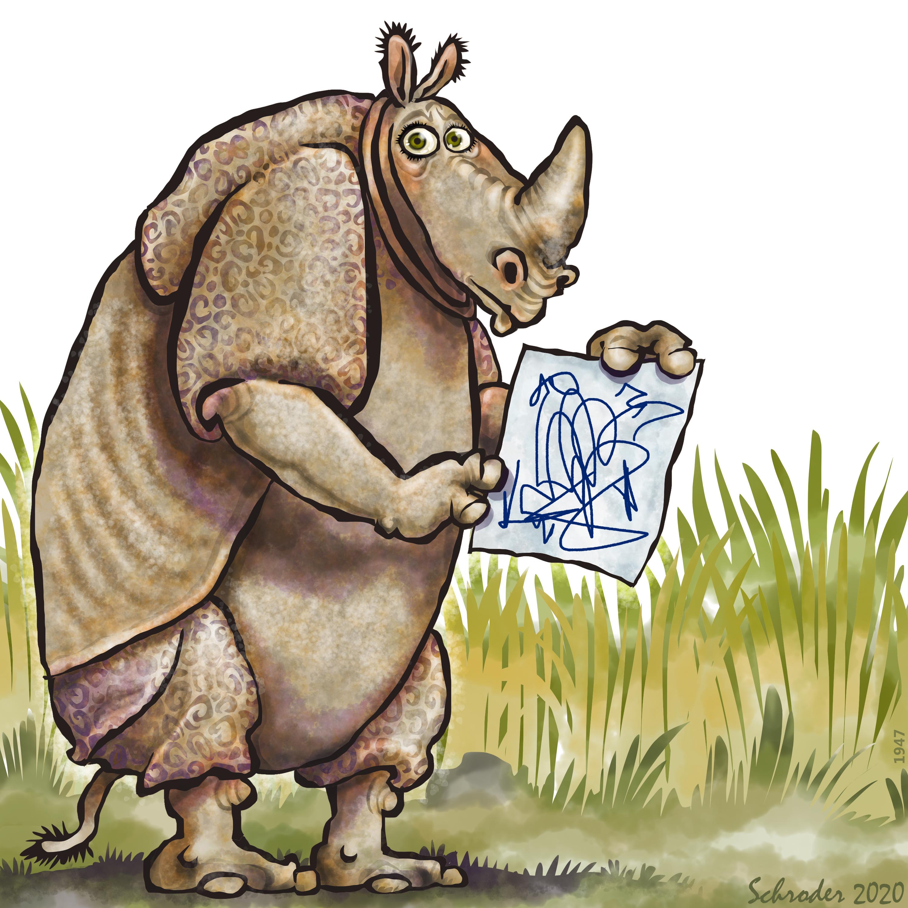Rhinos sleep, doze, daydream, and space out, in rough rotation night and day. We wink and We’re there. We snort and We’re back. A finely tuned system.