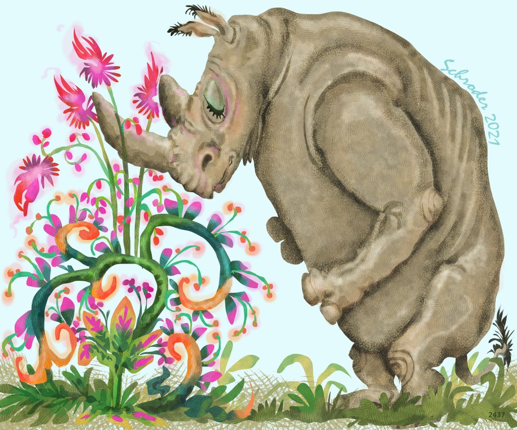 The Most Mythic of all plants is the RhinoRoot, a plant encompassing the ecstacies of scent and color, flavor and associated dietary benefits. This is a plant that can seduce at long range. The down side of RhinoRoot is that We can’t seem to locate it. Like the Holy Grail of Plants.
